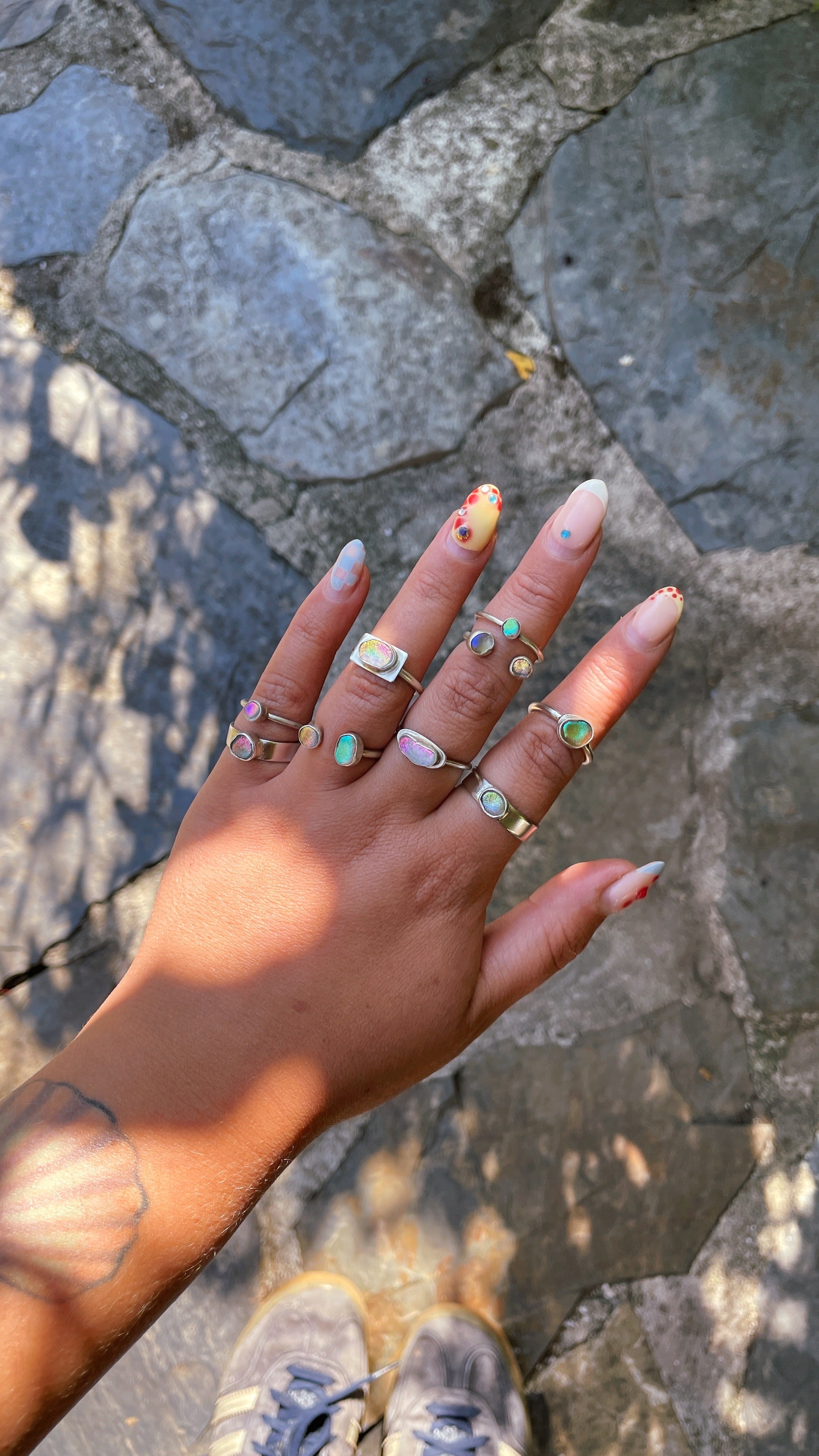 Adjustable Size M-O Sterling Silver Ring with Dichroic Glass Stone