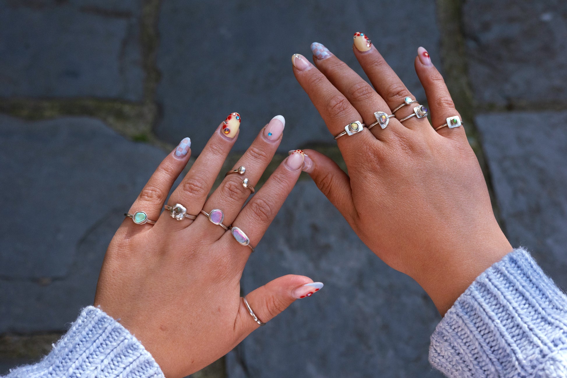 A one of a kind, sterling silver ring made with two silver balls. Open and adjustable . Completely handmade and due to the nature no two rings will ever with the same.
