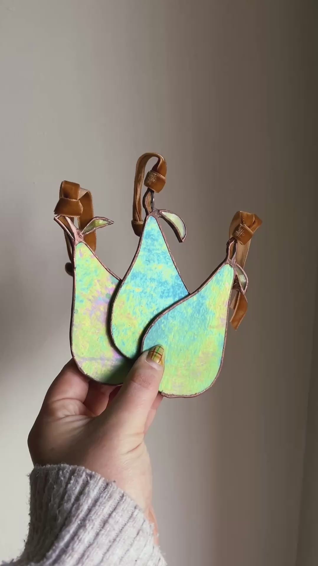 Stained Glass Pear Iridescent Ornament Suncatcher