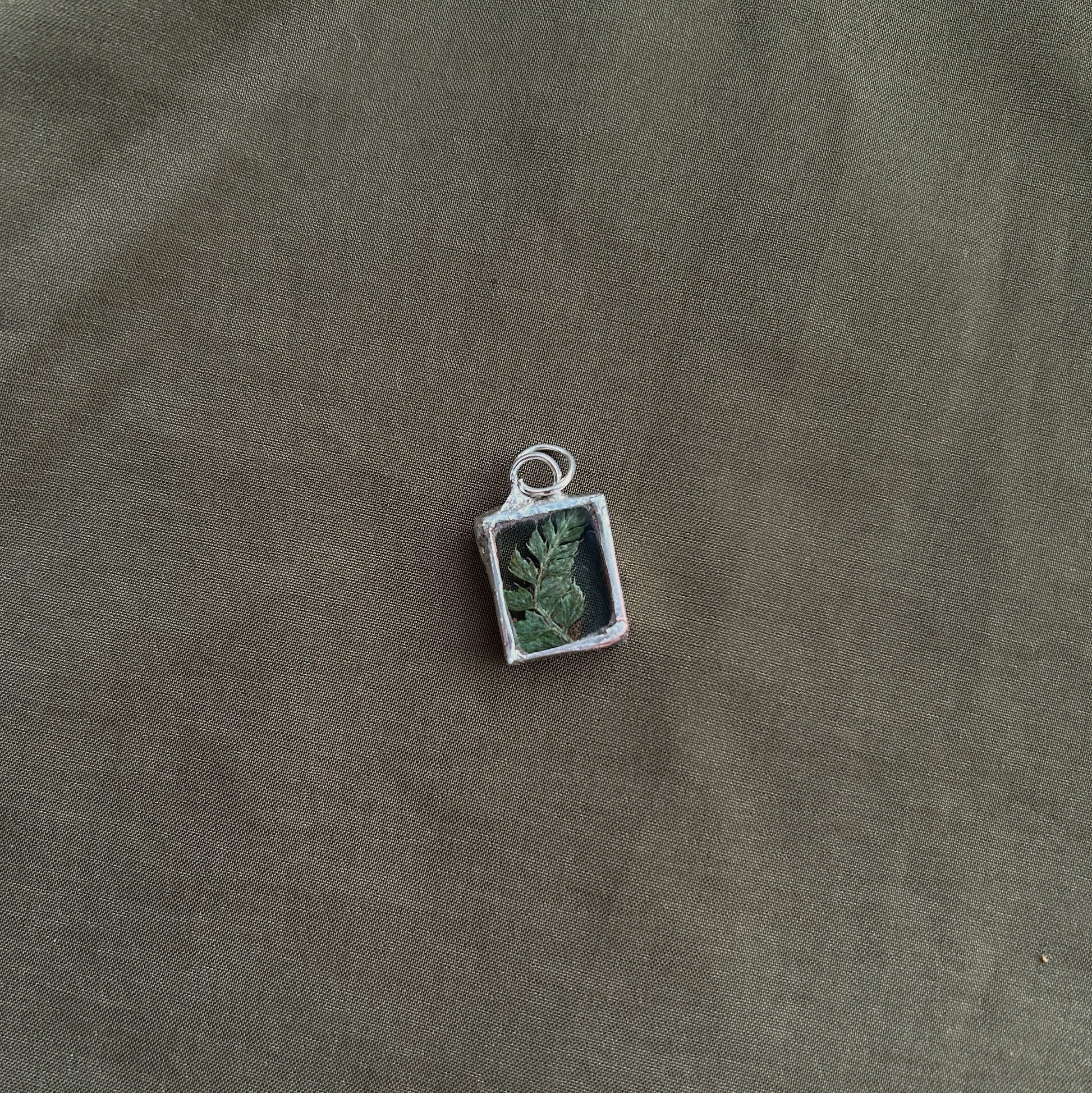 A small glass frame containing a pressed flower. Made with glass and lead free solder.