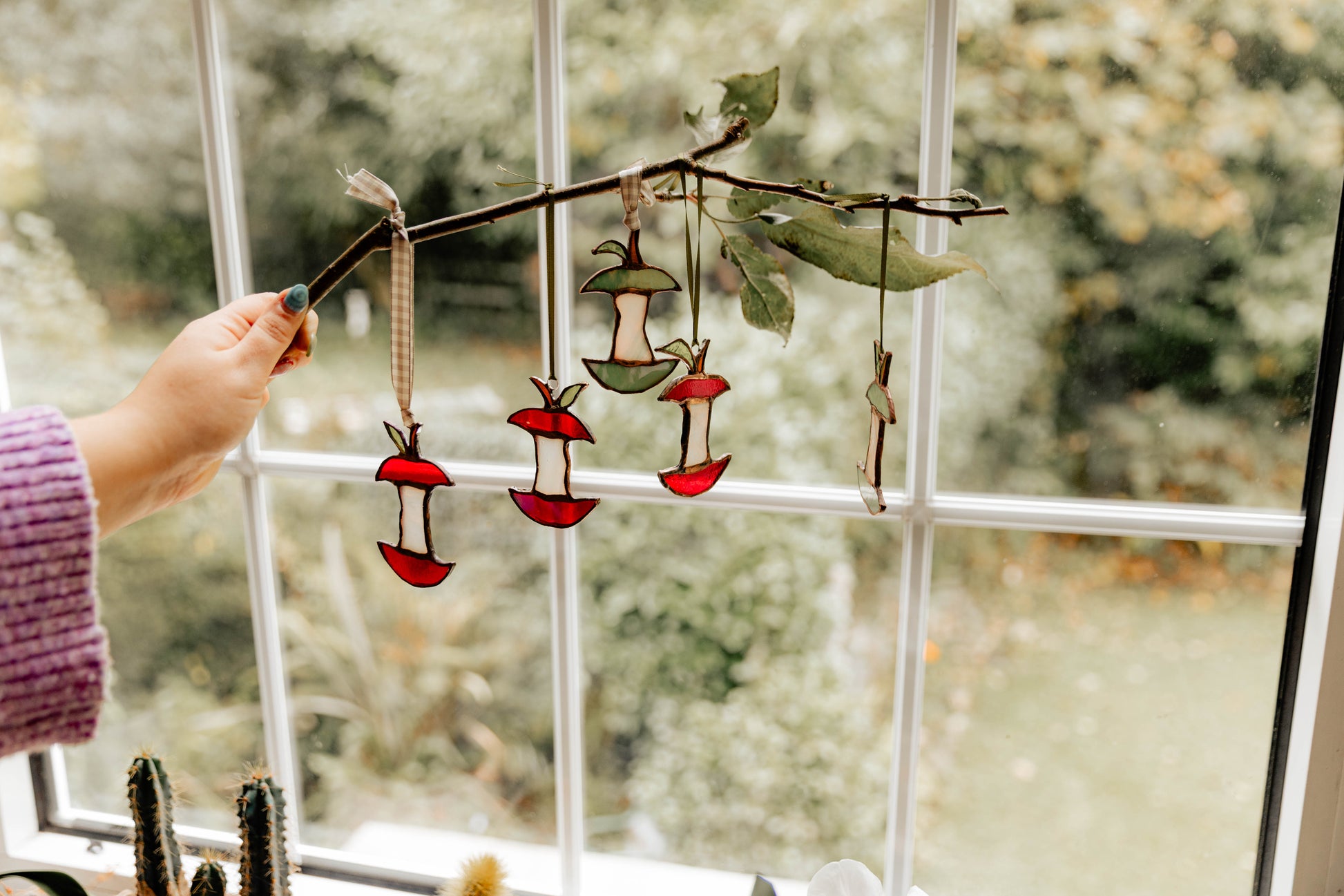 Red Stained Glass Iridescent Apple Core Ornament Suncatcher