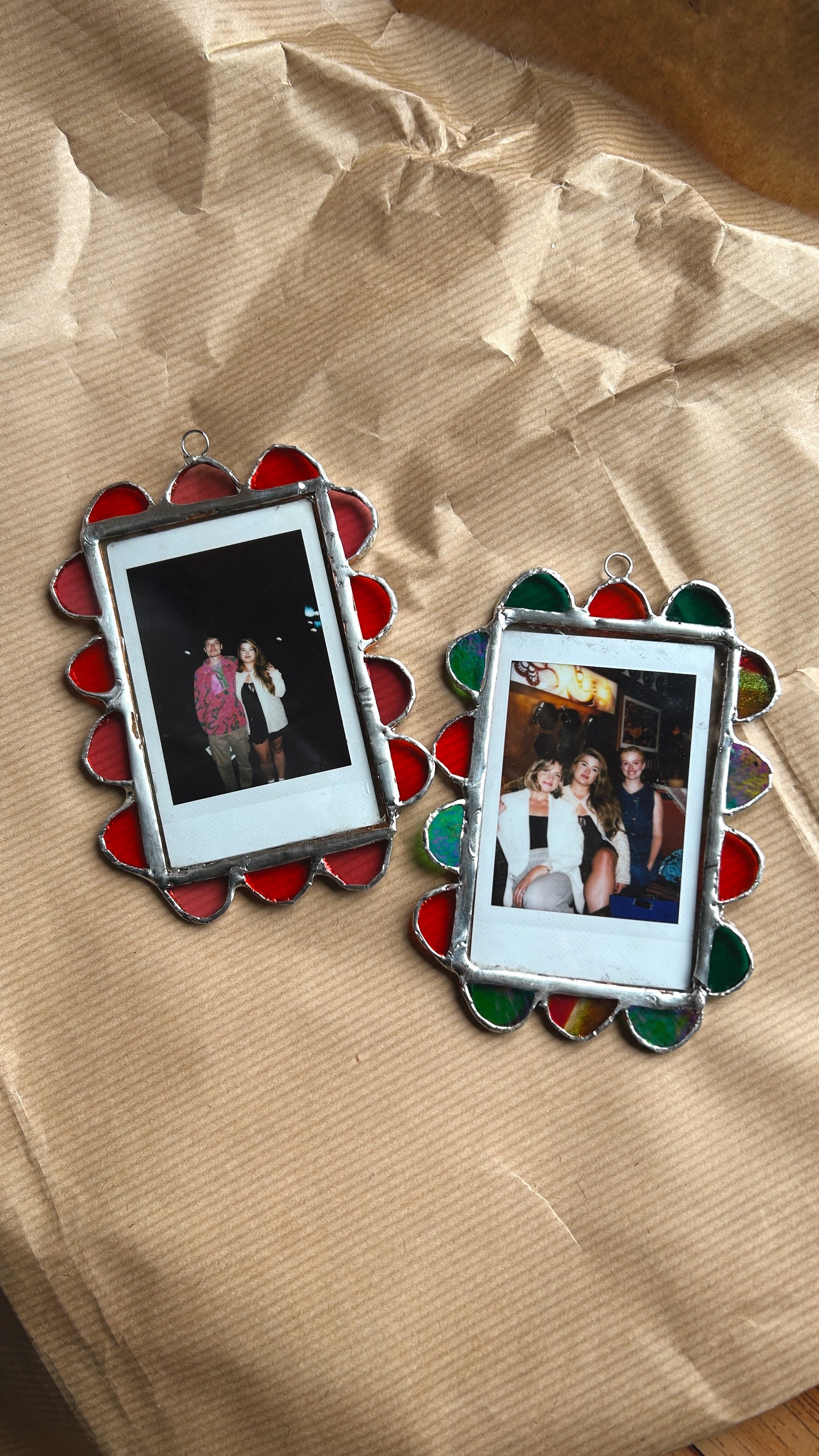 A handmade, stained glass photo frame. This frame has been made to fit the Instax Mini Film but also could be used for a small art print!