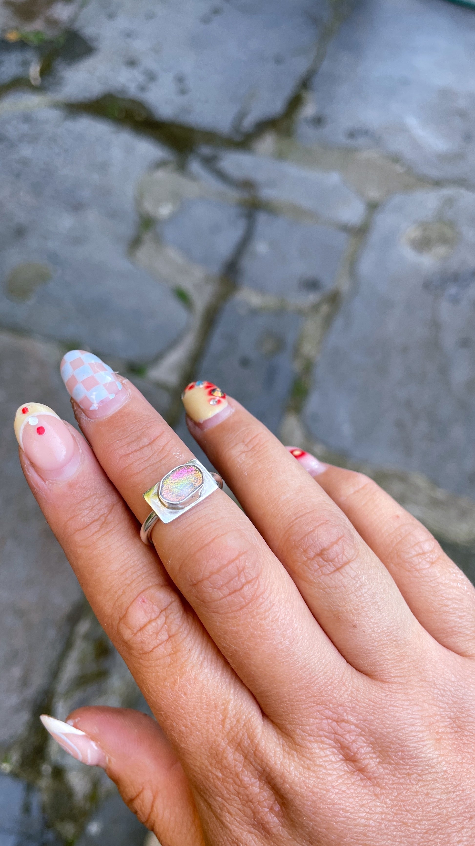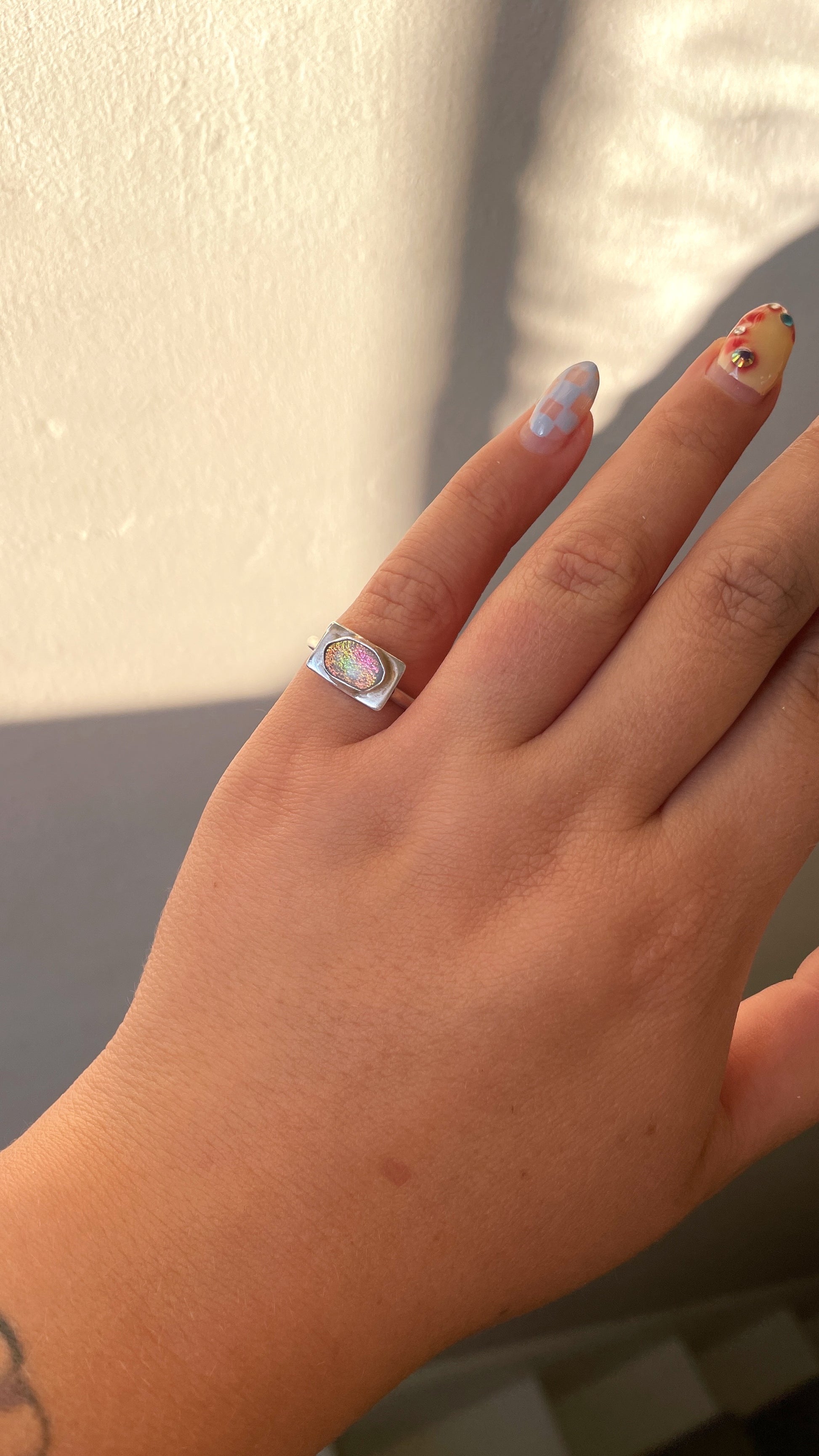Size J 1/2 Sterling Silver Ring with Dichroic Glass Stone