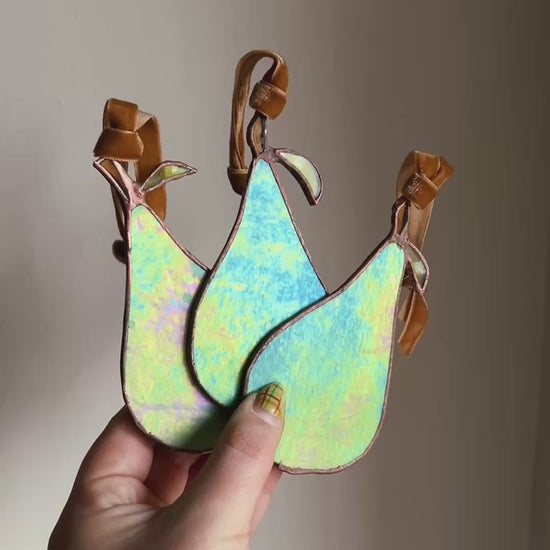 Stained Glass Pear Iridescent Ornament Suncatcher